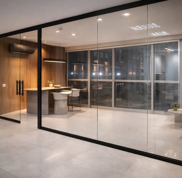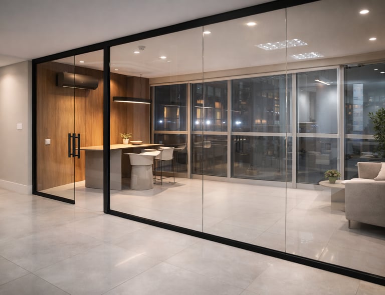 Divisórias em vidro temperado para escritórios