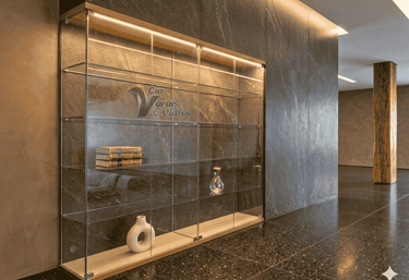 Aparadores em vidro sob medida com elegância, leveza e sofisticação.
