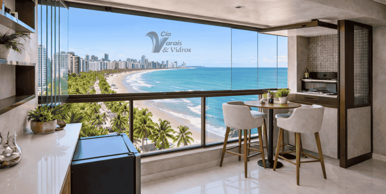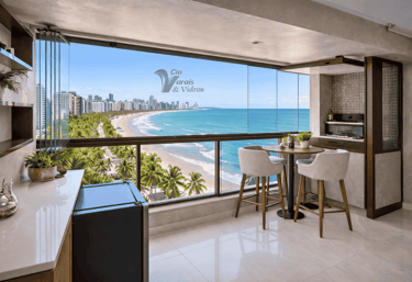 Fechamento de sacadas e varandas com vidro temperado para conforto e proteção.