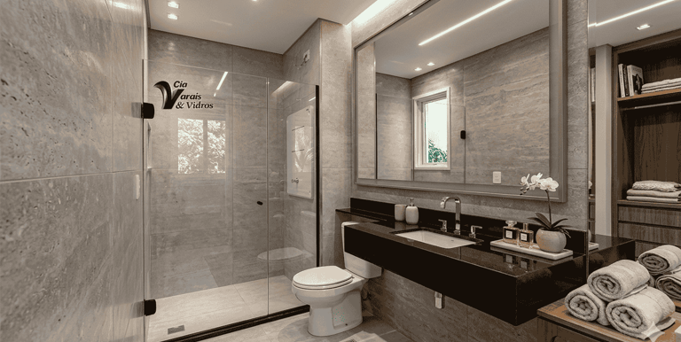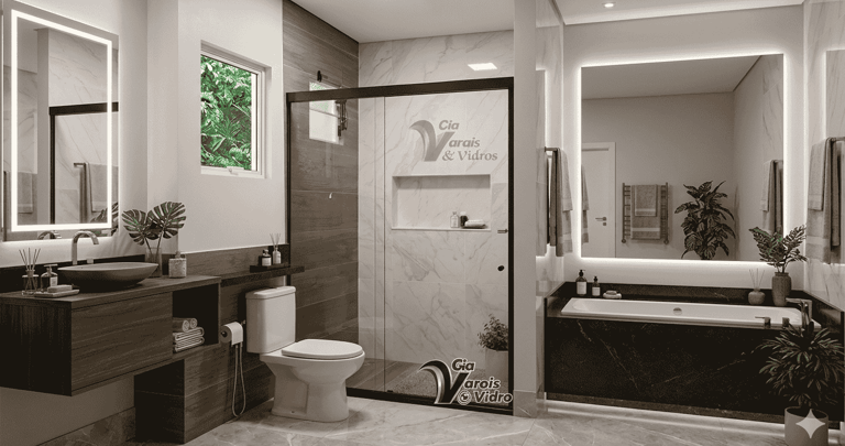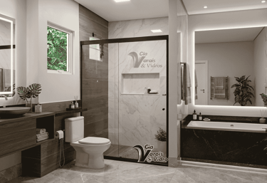 Box de giro elegante que valoriza seu banheiro com praticidade